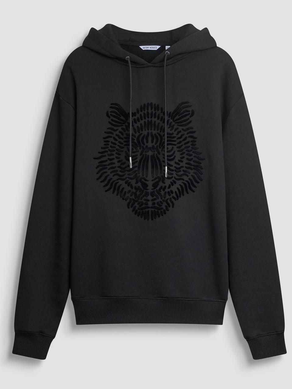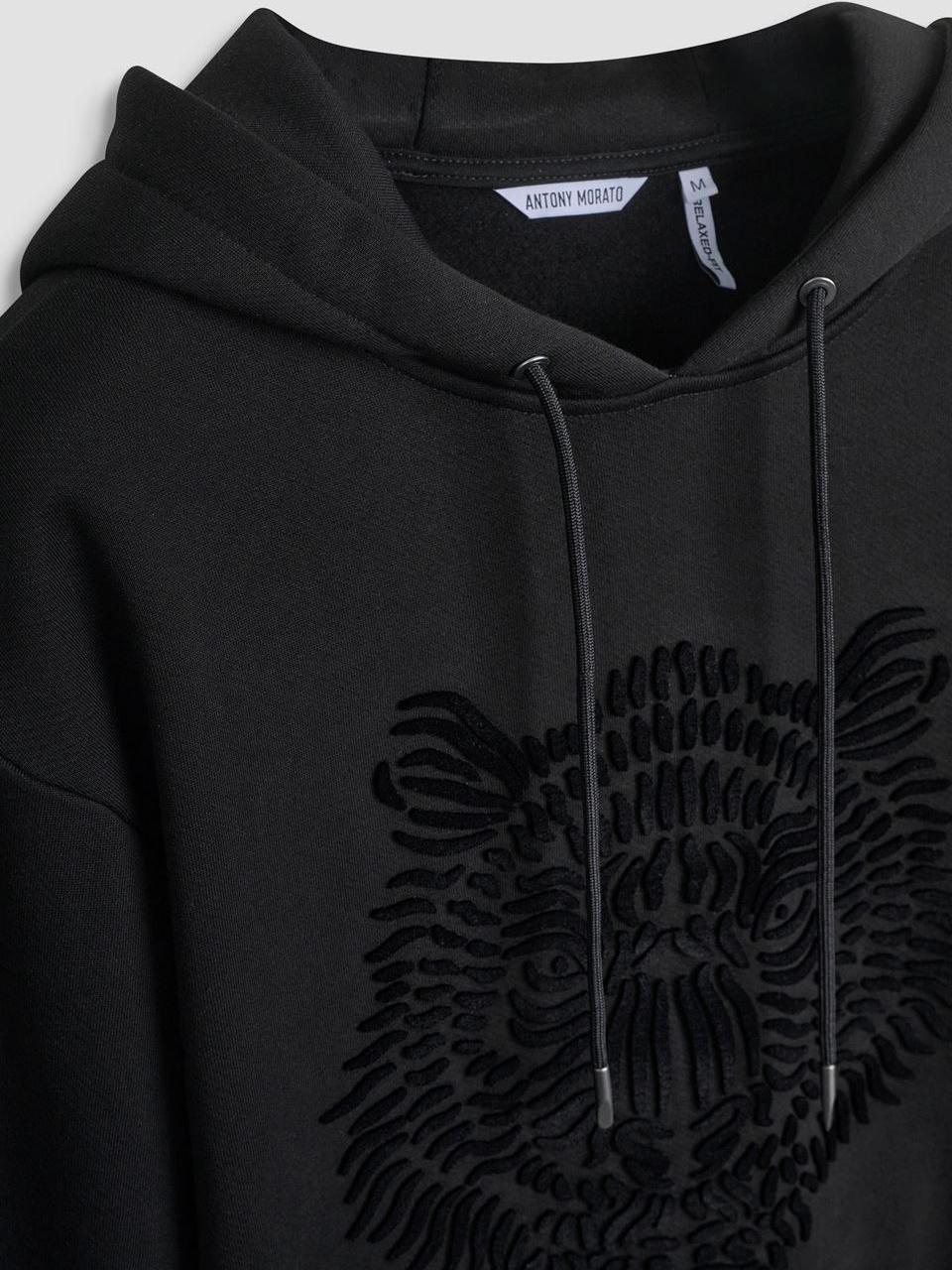Regular Boxy Fit Kapuzensweatshirt aus weichem Baumwollmischgewebe. Ikonischer Relief-Tiger auf der Vorderseite, Kordelzug zum Verstellen der Kapuze, elastisches Strickgewebe an Ärmeln und Saum. Ein Kleidungsstück für Liebhaber des lässigen Looks, die dabei nicht auf Komfort und Stil verzichten möchten.