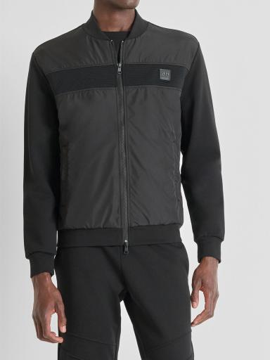 Slim Fit Sweatshirtjacke mit Reißverschluss aus weichem Interlock-Baumwollmischgewebe, kompakt und bequem. Zwei Leistentaschen auf der Vorderseite, Ärmel und Saum aus elastischem Strickgewebe, kleine aufgenähte Logo-Applikation auf der Vorderseite. Die Besonderheit dieses Kleidungsstücks liegt im Spiel mit kontrastierenden Stoffen: Baumwoll- und Nylonteile wechseln sich ab und machen das Modell so attraktiv und unkonventionell. Sie eignet sich auch perfekt als leichte Jacke für die ersten kalten Tage.
