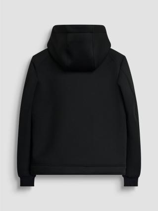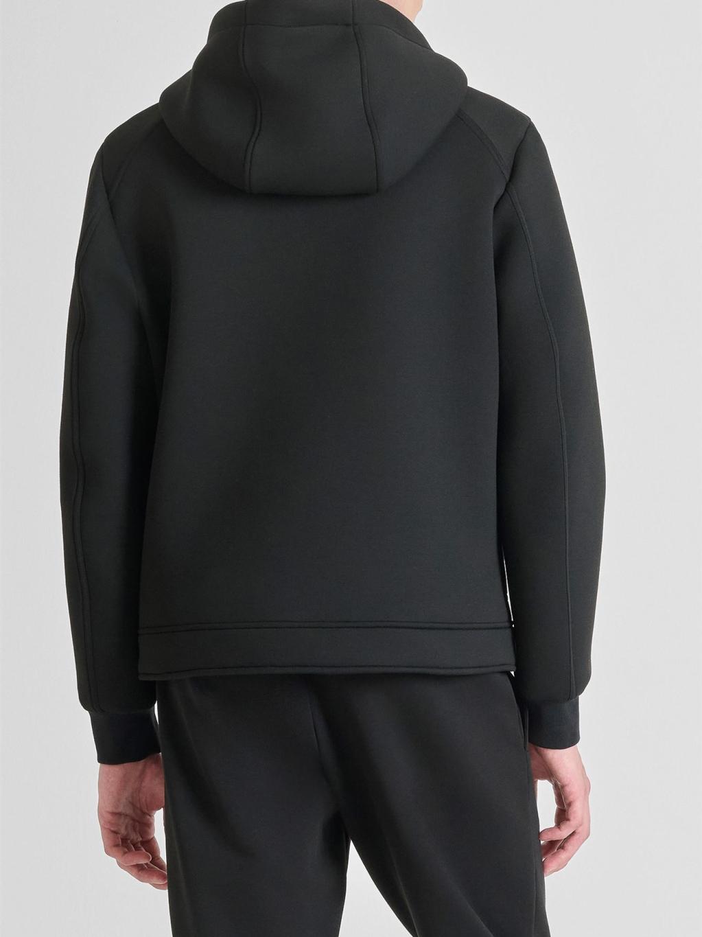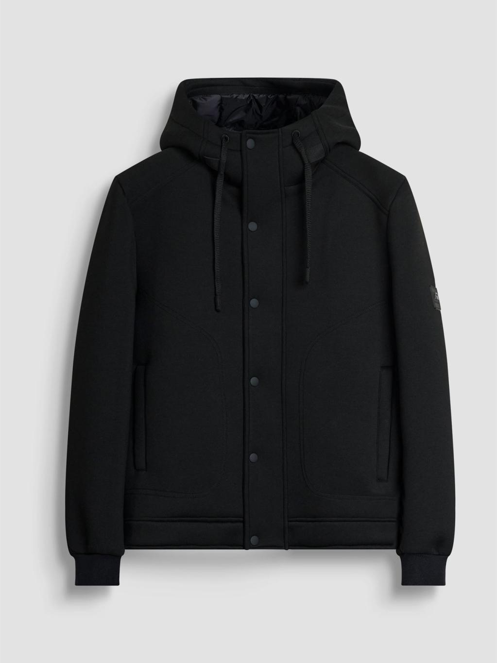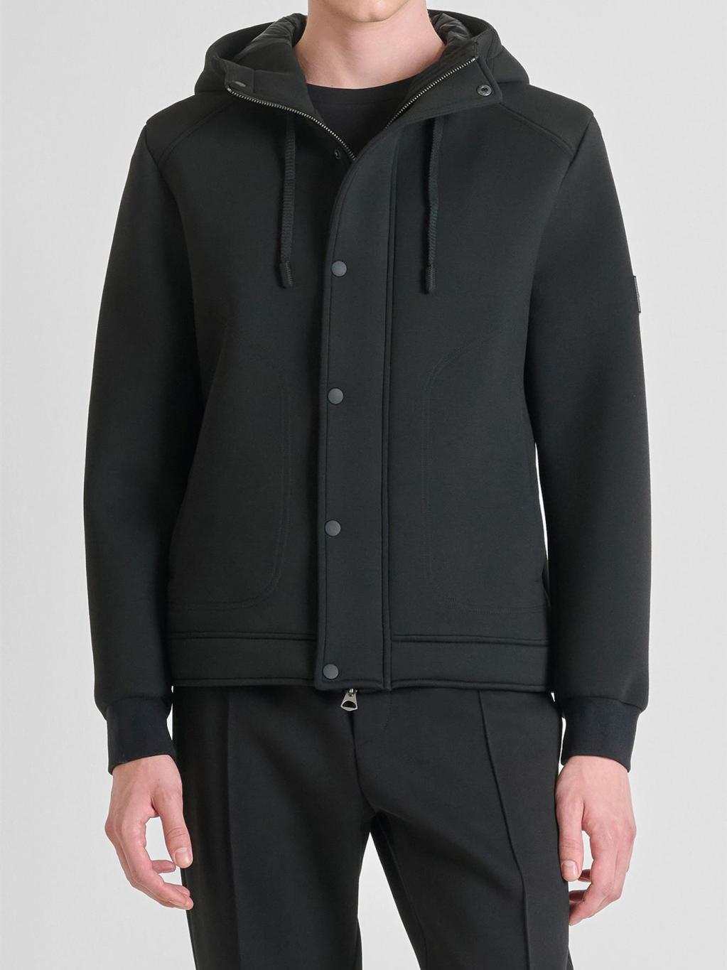 Regular Fit Jacke aus elastischem und bequemem Scuba-Jersey mit nicht abnehmbarer gefütterter Kapuze. Ausgestattet mit einer weichen und leichten DuPont™ Sorona®-Öko-Polsterung, die für Elastizität, Formbeständigkeit und hohen Wärmekomfort bekannt ist – der perfekte Begleiter für den Beginn der kalten Jahreszeit. Eine Mischung aus zeitgenössischem und urbanem Stil, mit Reißverschluss und Druckknöpfen. Zwei seitliche Leistentaschen und Bündchen aus elastischem Strickgewebe. Kleine, gummierte Logo-Applikation auf dem Ärmel. Diese Jacke ist perfekt, um sich gegen die ersten kalten Tage der Saison zu wappnen.