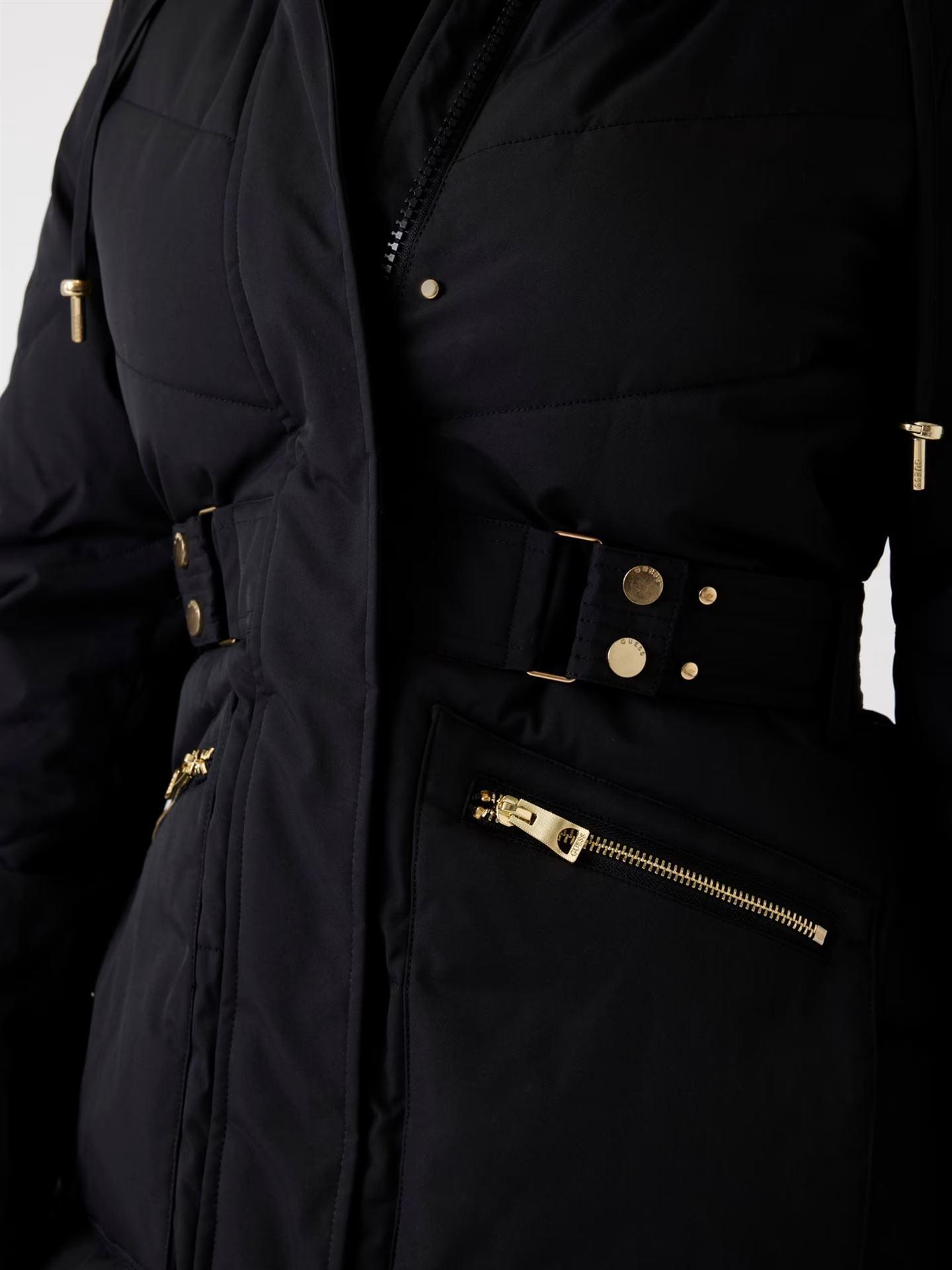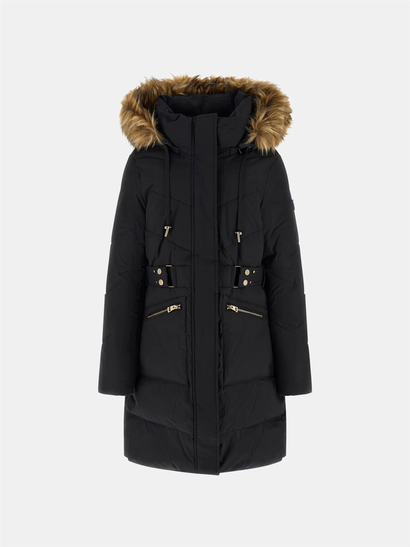 Kapuze mit Kunstpelz-Besatz und lange Ärmel.